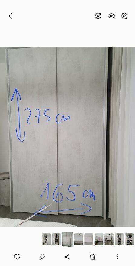 Sprzedam 2 szafy do sypialni, 3 szafki nocne i 1 komodę. Meble robione na zamówienie, pantografy ( cena jednego 960 zł), wbudowane komody ze szufladami, stan idealny.Cena do negocjacji.